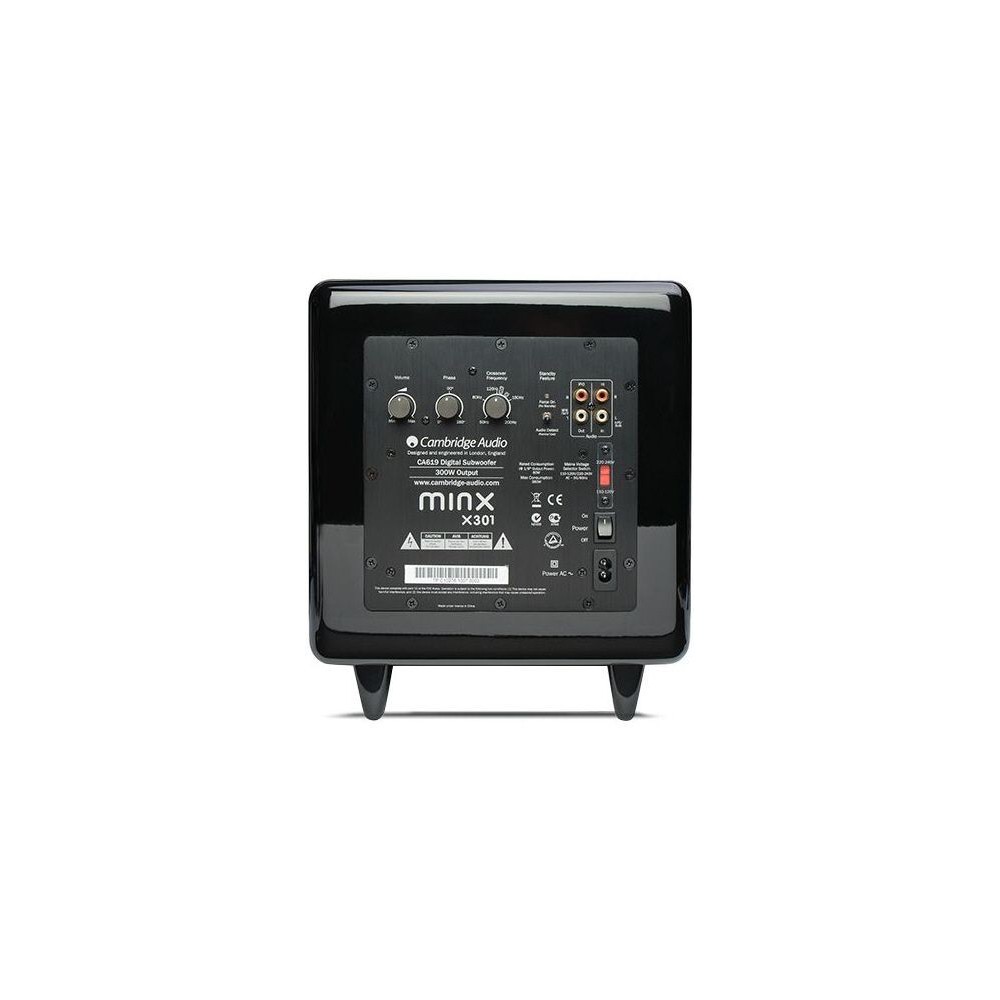 El subwoofer Cambridge Minx X-301 tiene unas dimensiones (28 cm de lado, 11 pulgadas) mucho más reducidas que la de los subwoofers habituales, con una extraordinaria potencia (300 W). Gracias a un woofer activo de 8 pulgadas y un radiador de graves auxiliar, la unidad hará que tu música y sus películas ganen una viveza extraordinaria y una potencia envolvente.
