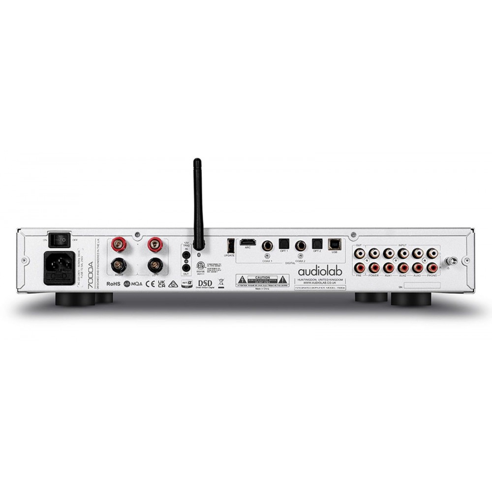 Cualquiera que sea la fuente de entrada - analógica, digital, inalámbrica o TV - el 7000A ha sido diseñado con el mismo nivel de detalle que se puede esperar de audiolab, todo con la última tecnología para estar totalmente equipado para cubrir muchas bases, sin embargo, mantiene un precio que mantiene la marca audiolab a la vanguardia del audio doméstico de calidad. Entradas analógicas duales para reproductores de CD y fuentes de nivel de línea, entradas duales Coax y SPDIF para fuentes digitales y un receptor Bluetooth aptX para la reproducción inalámbrica de audio y dispositivos inteligentes. Siguiendo la tendencia creciente de integración directa en el salón de la electrónica de audio de primera calidad y, por tanto, más en sintonía como pieza central del sistema de audio doméstico, el 7000A lleva la conectividad a una nueva dimensión con una conexión de canal de retorno de audio (ARC) integrada para su uso con pantallas, lo que aporta la dinámica audiolab a la reproducción de música basada en aplicaciones de TV y al cine en casa. Y no nos olvidemos de la conexión directa a PC mediante USB.