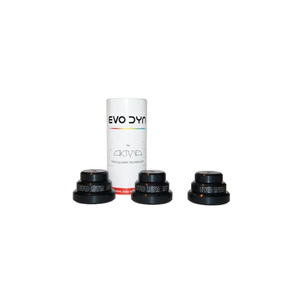 Parte de la energía producida por el altavoz se pierde al ser absorbida por el suelo de la sala de escucha. Las bases EVO DYN desacoplan las cajas acústicas del suelo o de la superficie en la que se apoyen y al mismo tiempo absorben la energía que se transmite evitando que el suelo o esa superficie entren en resonancia.