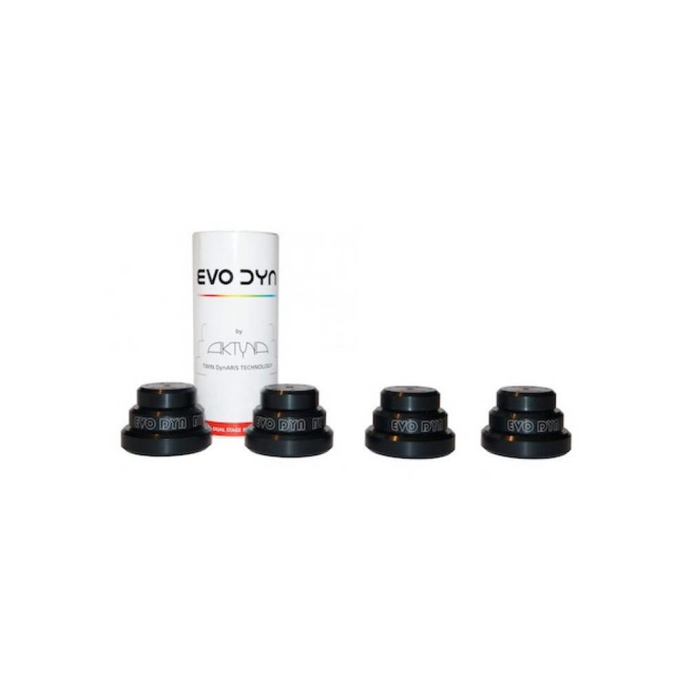 Parte de la energía producida por el altavoz se pierde al ser absorbida por el suelo de la sala de escucha. Las bases EVO DYN desacoplan las cajas acústicas del suelo o de la superficie en la que se apoyen y al mismo tiempo absorben la energía que se transmite evitando que el suelo o esa superficie entren en resonancia.