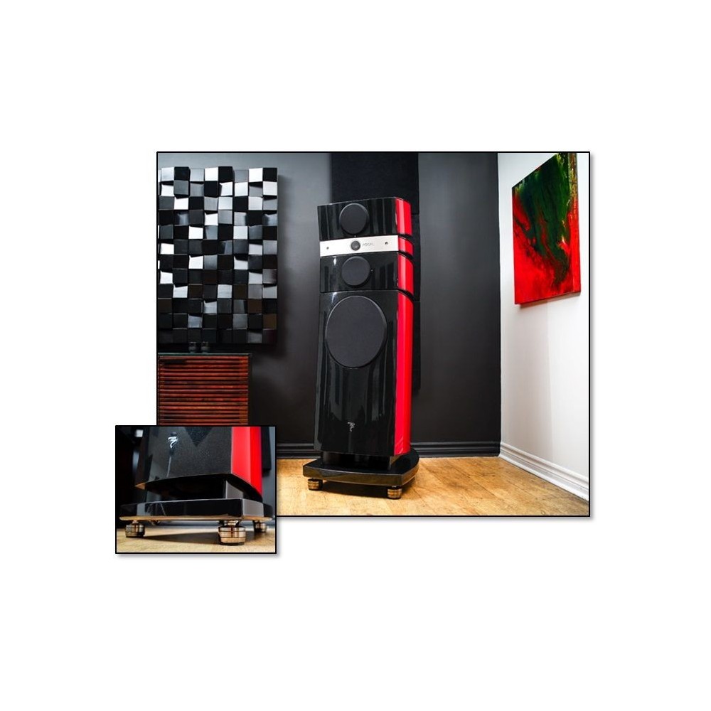 Las resonancias internas son vibraciones que se reverberan repetidamente en el recinto del altavoz y causan ruidos indeseados. El ruido interno indeseado es el resultado de los artefactos que reverberan repetidamente en el altavoz y cuando se replican en ambos canales, se percibe que están en el medio, lo que hace que la imagen estéreo se colapse y se vuelva bidimensional. Los aisladores IsoAcoustics reducen las resonancias internas para eliminar los ruidos internos indeseados. El resultado es una imagen estéreo abierta de sonido espacial natural y holográfico.