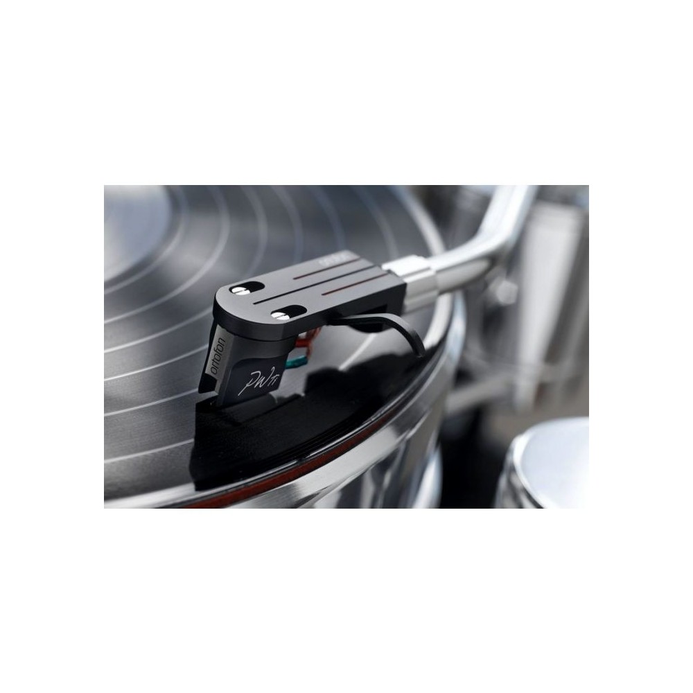 Uno de los componentes importantes es el sistema de amortiguación de rango amplio (WRD) patentado de Ortofon, en el que un disco de platino pequeño y pesado se intercala entre dos absorbentes de caucho, ambos con propiedades diferentes. Esto garantiza no solo un rendimiento de seguimiento excepcional, sino que también crea una amortiguación perfecta en todo el rango de frecuencias. Debido a esto, la distorsión y la resonancia se eliminan virtualmente.