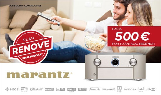 ¿Quieres experimentar la emoción de la música y el cine con los mejores receptores audiovisuales del mercado? Marantz te ofrece una oportunidad única para ello con su exclusivo Plan Renove, por el que te ofrecemos hasta 500 euros por tu antiguo receptor de A/V al comprar uno de los modelos de nueva generación –unidades limitadas- de la marca. Una propuesta irresistible para acceder a los productos de su clase más musicales, polivalentes y tecnológicamente sofisticados del momento, con una combinación única de dinámica brutal en cine, refinamiento audiófilo en música y la compatibilidad con lo último en streaming de audio “Hi-Res”, imagen 4K HDR –Dolby Vision incluido- y conectividad, todo ello gestionado por la fabulosa HEOS App. ¡UNIDADES LIMITADAS!