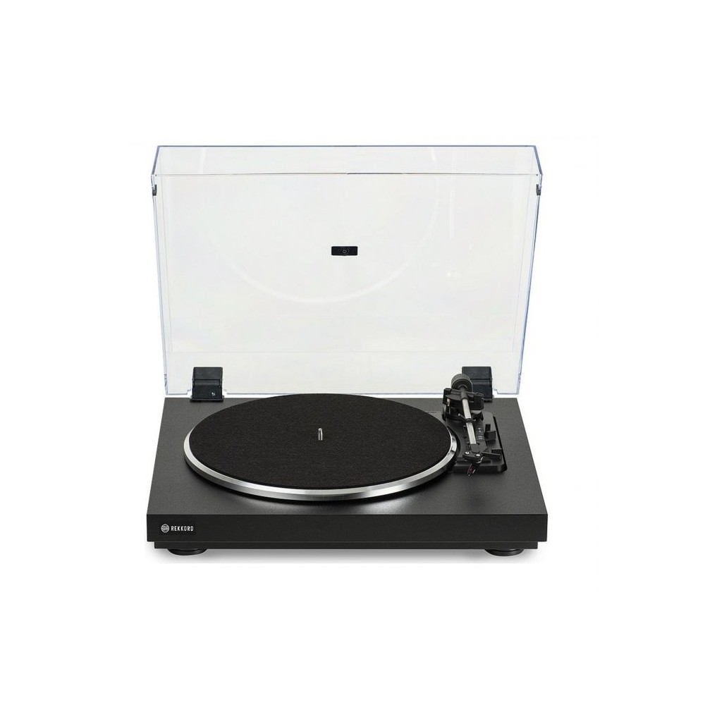 El Rekkord Audio F110 es nuestro tocadiscos de subchasis completamente automático de nivel de entrada. Toda la transmisión automática, así como el brazo fonocaptor y el plato de aluminio amortiguado, están construidos sobre una plataforma de subchasis flotante que está desacoplada del resto del chasis. La construcción se realiza en unos sencillos pasos y solo tienes que conectarlo a tu amplificador y podrás disfrutar de tus discos. Como es una máquina totalmente automática, le ofrece mucha comodidad. Simplemente presione iniciar y el brazo fonocaptor se moverá a la posición correcta y comenzará a reproducir música. Al final del disco, levanta el brazo fonocaptor, lo vuelve a colocar en su posición de reposo y apaga el motor. La cápsula AT3600 preajustada está montada en un cabezal reforzado con fibra de carbono que proporciona la conexión perfecta con el brazo de aluminio. Si necesita un preamplificador de fono integrado, el tocadiscos F110P es la elección correcta. El cable, la cubierta antipolvo y un solo adaptador se suministran con el tocadiscos.