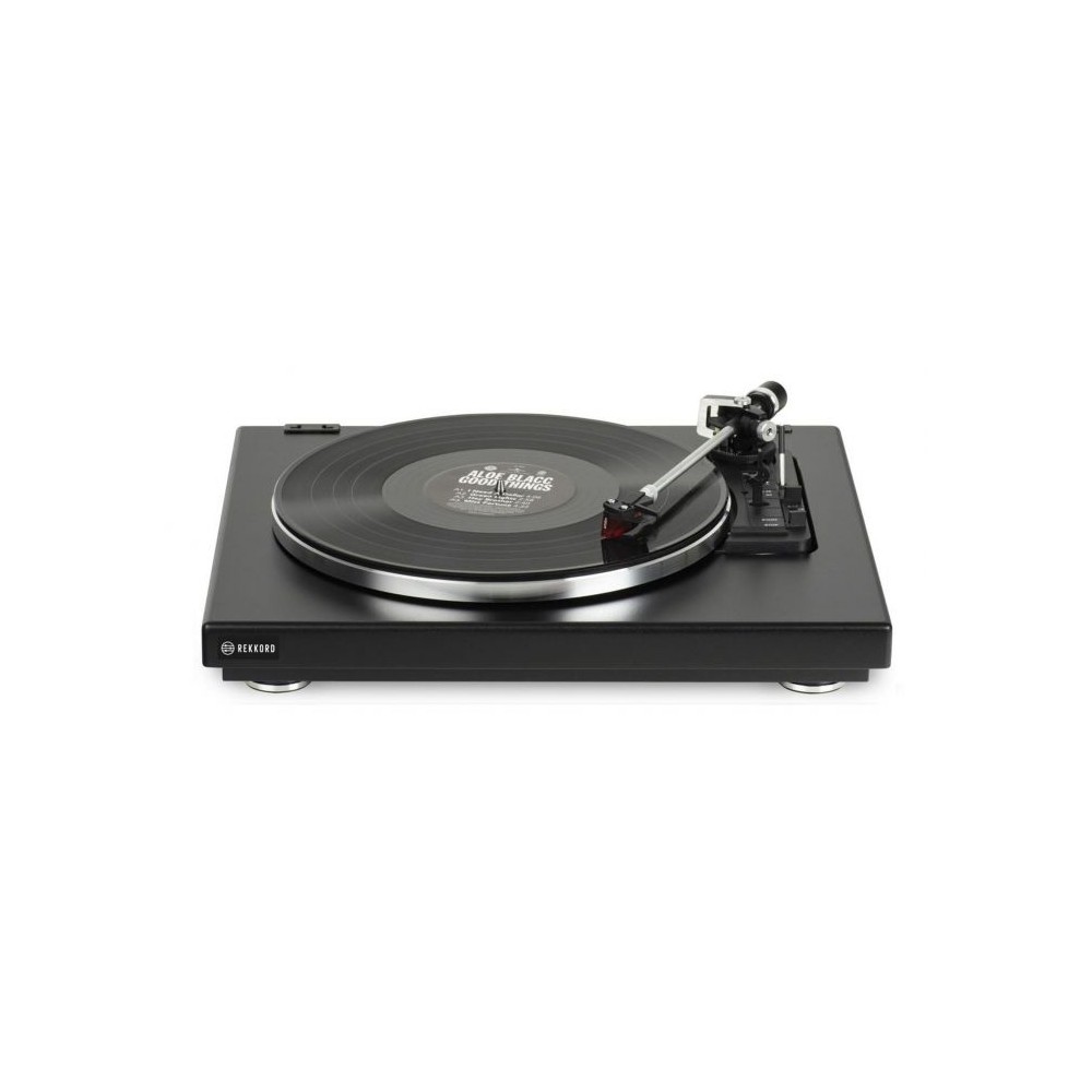 - El tocadiscos Rekkord Audio F400 es un tocadiscos de subchasis completamente automático que no solo impresiona con su sonido, sino que también llama la atención. Toda la transmisión automática, así como el brazo fonocaptor y el plato de aluminio amortiguado, están construidos sobre una plataforma de subchasis flotante que está desacoplada del resto del chasis. El F400 tiene un ajuste de fuerza de seguimiento sin masa que optimiza el centro de gravedad directamente en el centro del rodamiento. El sistema automático es configurado y refinado por técnicos experimentados y se basa en un mecanismo muy complejo que tradicionalmente se ha perfeccionado y desarrollado durante décadas. La cápsula Ortofon 2M Red de alta calidad y preajustada está montada en un cabezal reforzado con fibra de carbono, que ofrece la conexión perfecta con el brazo de aluminio. La 2M Red es una cápsula multiuso que ofrece un sonido abierto y dinámico con un ligero toque de calidez. El chasis está hecho de MDF y está disponible en 4 versiones diferentes: negro satinado, negro de alto brillo y chapas de madera real en cerezo o macassar. El cable, la cubierta antipolvo y un solo adaptador se suministran con el tocadiscos.