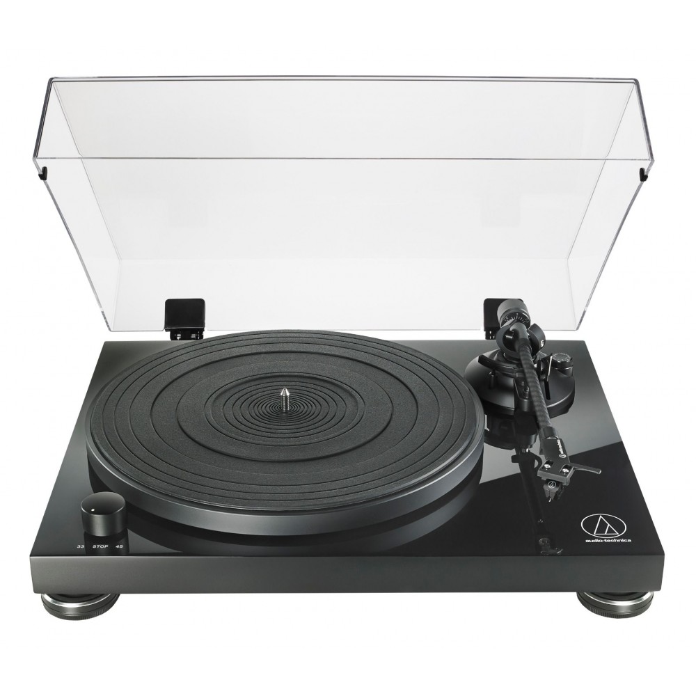El AT-LPW50PB es un tocadiscos totalmente manual, con transmisión por correa, diseñada para brindarle una reproducción de audio óptima de alta fidelidad a partir de vinilo. Cuenta con un zócalo de MDF (tablero de fibra de densidad media) antirresonancia de 30 mm de espesor, con un acabado negro piano muy brillante para amortiguar la retroalimentación acústica de baja frecuencia y un motor monitorizado por sensor para garantizar velocidades de rotación de plato precisas de 33 -1/3 y 45 RPM.