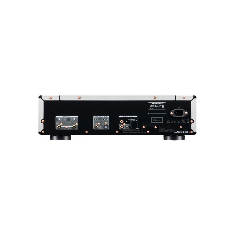 La fuente de alimentación del lector de CDs Marantz CD 60 utiliza diodos de barrera Shottky de alta velocidad y alta corriente, condensadores de almacenamiento con superior capacidad de manejo de corriente y reguladores de tensión mejorados con respecto a modelos precedentes de su misma categoría. El uso de condensadores sobredimensionados en la fuente de alimentación mejora la estabilidad de la corriente y reducen el nivel de ruido durante sesiones de escucha altamente exigentes.
