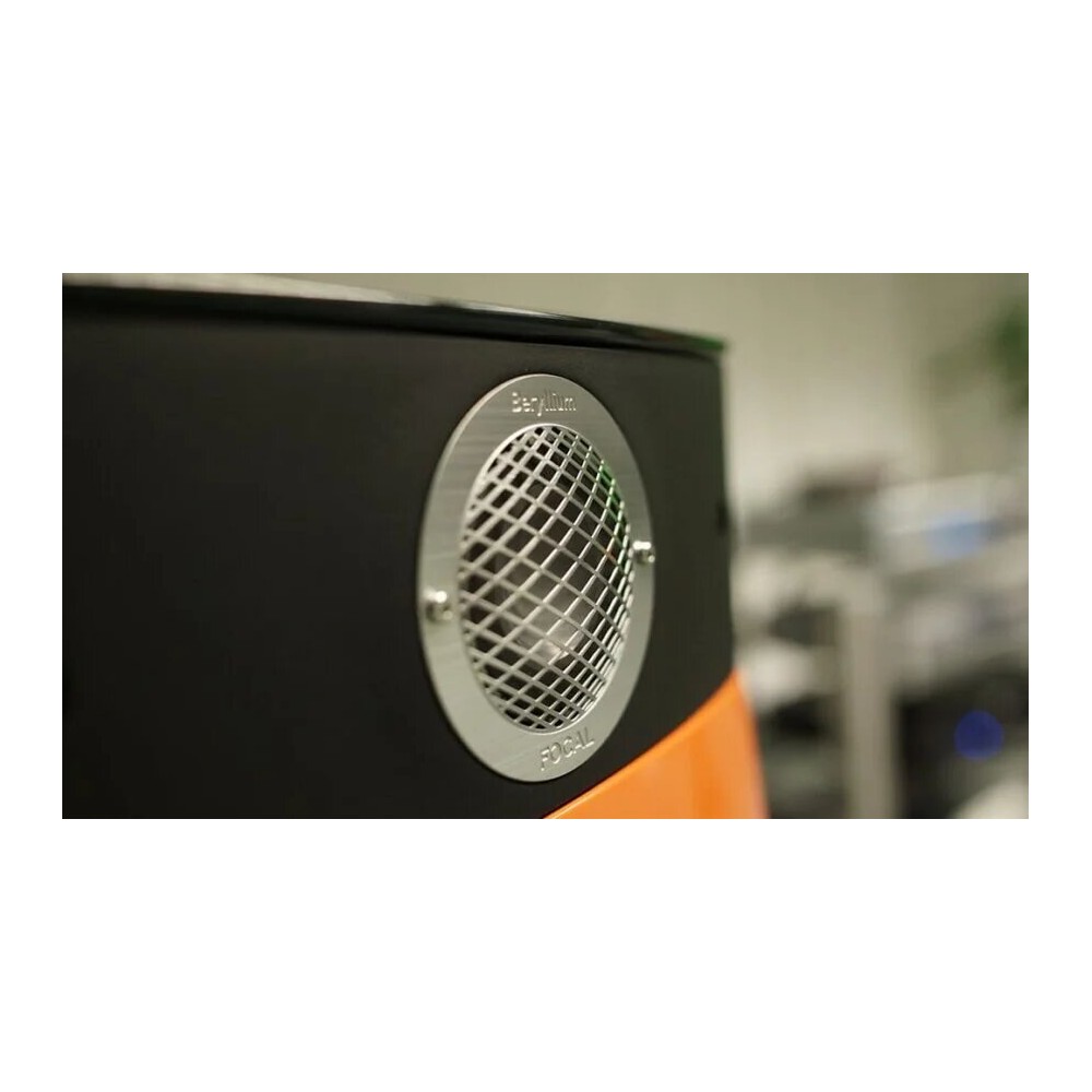 La parte posterior del tweeter Béryllium se carga con una pequeña cavidad que comunica con el exterior de la caja mediante un pabellón relleno con material amortiguador. La onda trasera del tweeter se absorbe así de forma delicada y progresiva. Su impedancia acústica tiende al cero, de modo que ninguna resistencia altera los desplazamientos de la cúpula. La distorsión se reduce el 30% y la definición alcanza su nivel máximo.