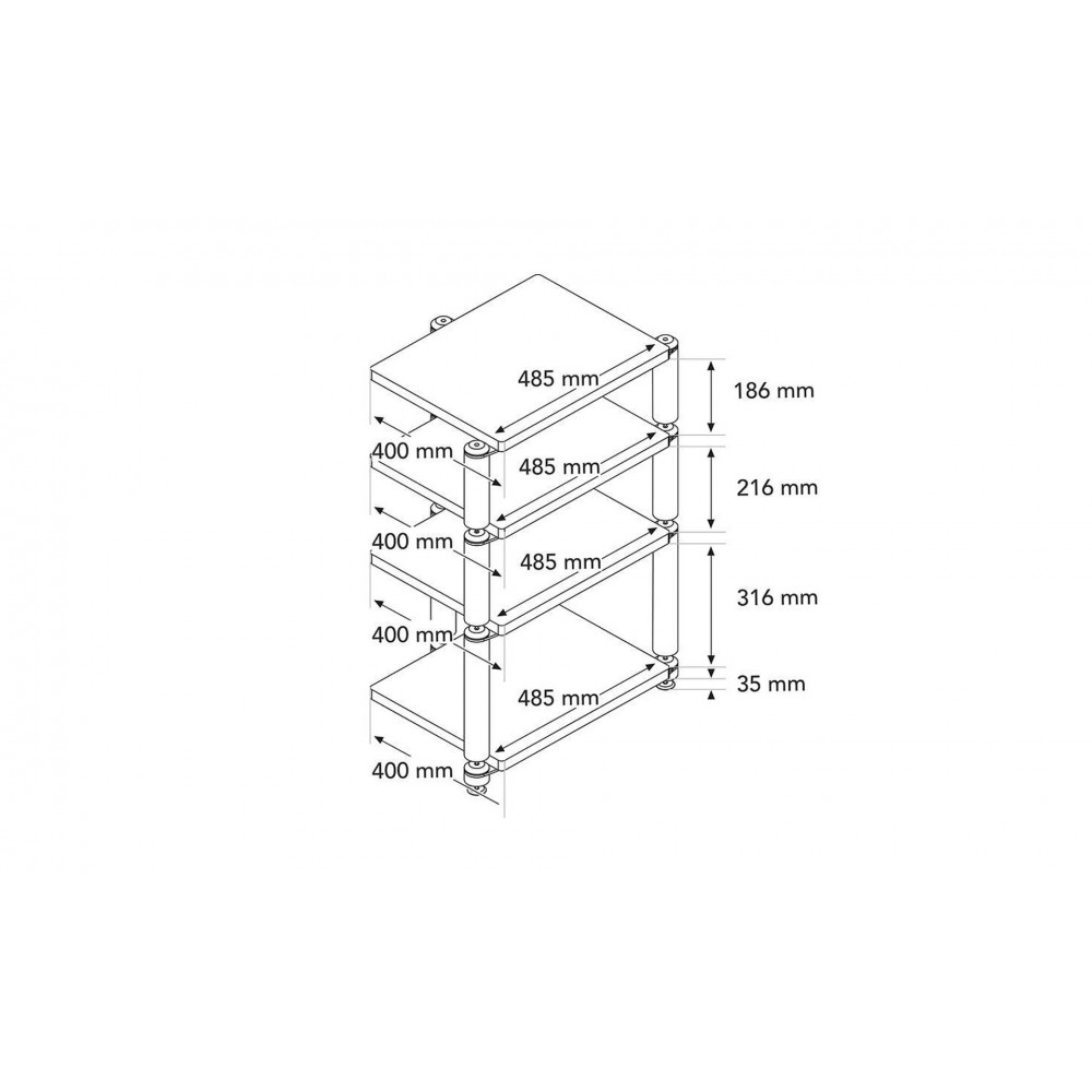 Cada módulo está equipado con púas y contrapúas para eliminar vibraciones no deseadas. Es ideal para albergar cualquier equipo Hi-Fi, desde amplificadores hasta tocadiscos de vinilo.