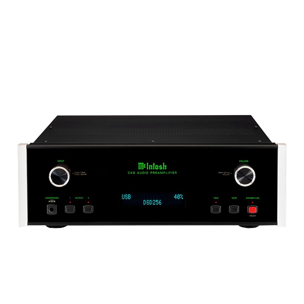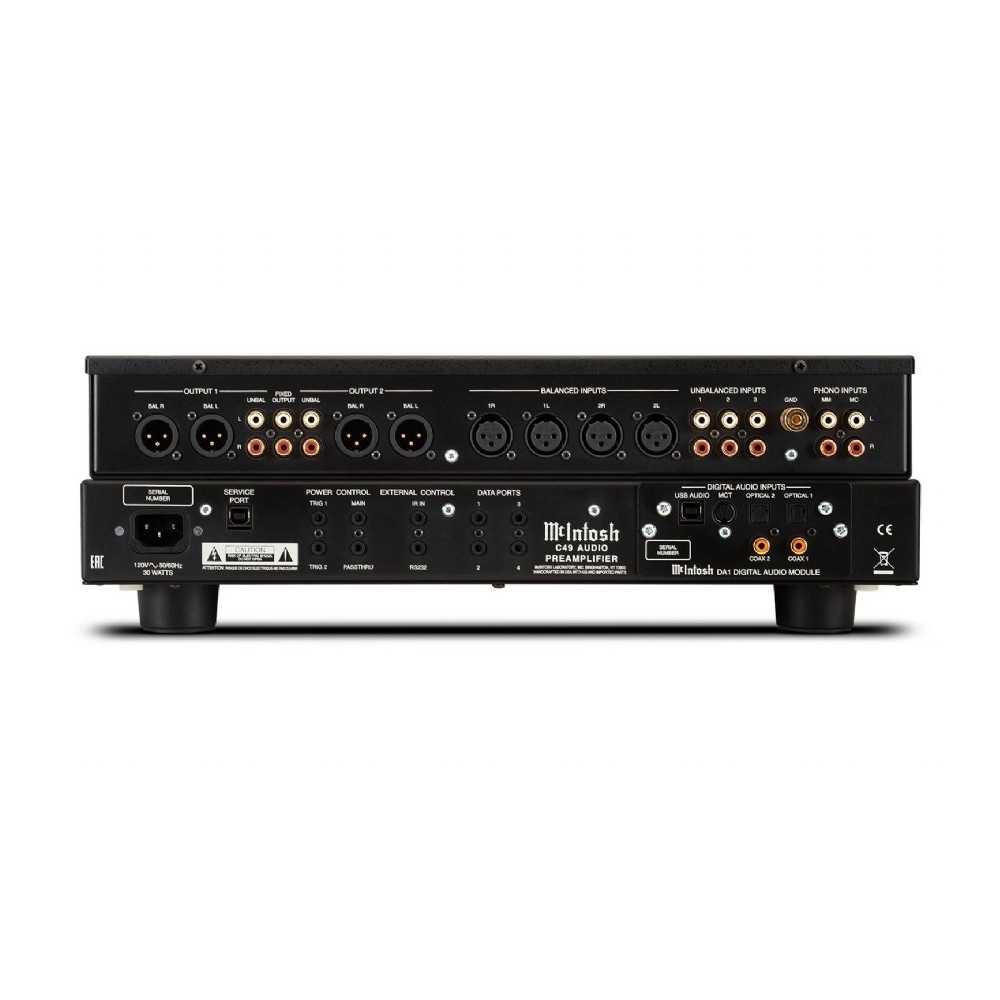 Excelente demostración del saber hacer de McIntosh en preamplificadores estereofónicos “solid state”, el C49 combina una elaborada topología circuital ejecutada con componentes de la máxima calidad con el versátil Módulo el Audio Digital D1 para sacar el máximo provecho de los nuevos formatos de audio de alta resolución. El DA1 incluye un total de seis entradas digitales (2 coaxiales, 2 ópticas, 1 USB y 1 MCT), a la vez que su funcionalidad DAC es compatible con grabaciones en DSD256 (11’2 MHz) y DXD con frecuencia de muestreo de 384 kHz. Para ello, incluye un “chip” de conversión D/A de 8 canales de grado audiófilo con tecnología de 32 bits configurado en modo Quad Balanced a fin de maximizar la gama dinámica y minimizar la distorsión. Asimismo, la exclusiva entrada MCT de McIntosh permite llevar a cabo una conexión DSD segura con cualquiera de las mecánicas de transporte CD/SACD de la marca y optimizar la calidad sonora de los SACD. En lo que respecta a la conectividad analógica, el C49 incluye un total de 7 entradas, entre ellas dos para giradiscos, así como 2 salidas de nivel variable en los formatos balanceado y no balanceado. El C49 se completa con una toma de auriculares alimentada por el exclusivo Headphone Crossfeed Director (HXD), que garantiza la compatibilidad con todo tipo de auriculares.