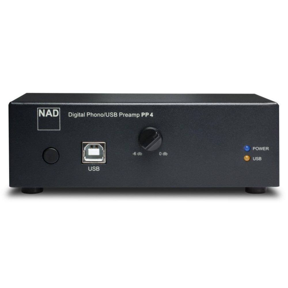 Muestre a su colección de vinilos un amor serio. Ofreciendo un excelente rendimiento sonoro y medido, las dos soluciones simples de NAD, el preamplificador de fono con entrada USB digital PP-4 hace que sea fácil agregar previo de phono a muchos de los amplificadores estéreo y receptores AV actuales que han eliminado la entrada de fono o han incluido un circuito de baja calidad para conectar tu tocadiscos. Como parte del compromiso de NAD con el medio ambiente, el PP 4 presenta una fuente de alimentación "verde" más eficiente que reduce el consumo de energía. El PP4 va un paso más allá con una interfaz USB, cable USB blindado y control de nivel de grabación que se combinan para reducir el ruido y mejorar el proceso de conversión de analógico a digital. La función de apagado automático del PP 4 ahorra energía al apagar automáticamente el PP 4 cuando no está en uso.