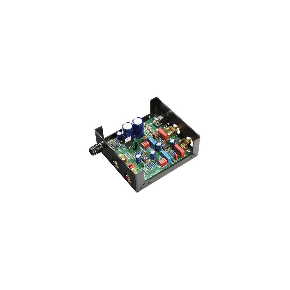 The entirely passive RIAA equalization network of the Black Cube Statement is realized with high precision foil capacitors. Bass coupling between the two linear gain stages is even realized with an MKP type. All resistors are of the low noise metal film variety. The switches for gain and load settings have gold plated contacts.