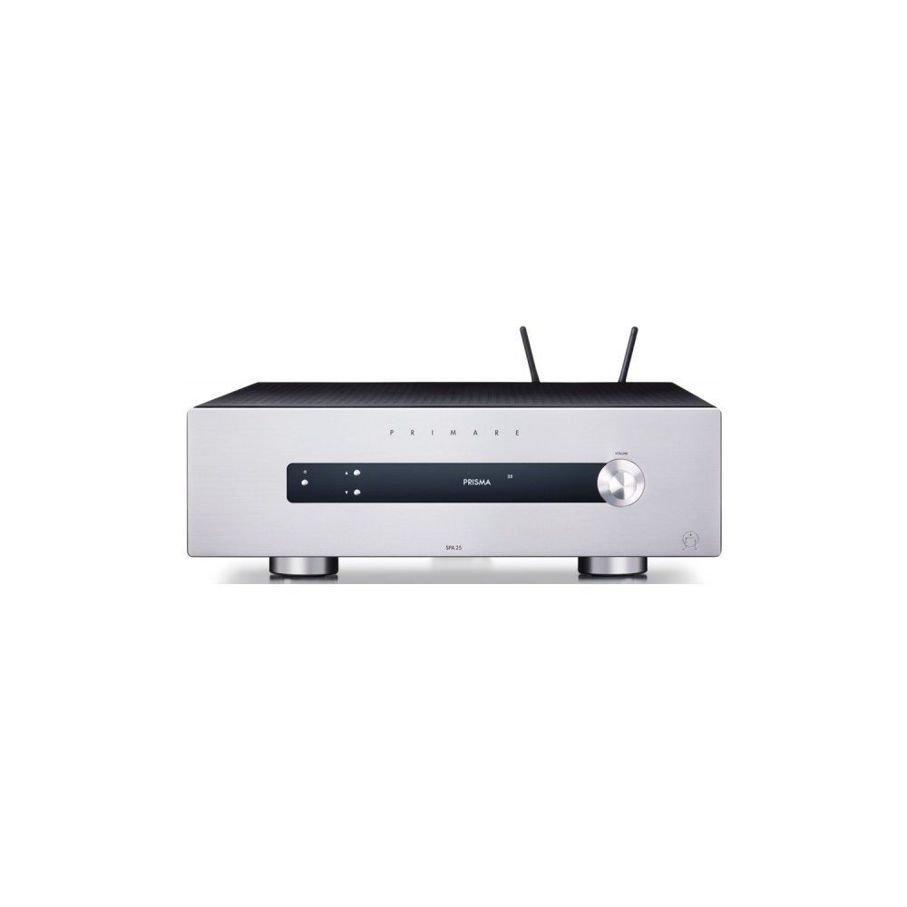 El SPA25 Prisma es un sofisticado amplificador integrado de A/V que combina la personalísima estética y la exquisita construcción de los diseños de la marca sueca con una serie de refinamientos técnicos que lo convierten en una herramienta idónea para configurar cines domésticos de muy altas prestaciones a partir de la comodidad del formato integrado. El SPA25 Prisma incluye nueve canales de amplificación con una potencia de 100 vatios continuos por canal sobre 8 ohmios con todos los canales excitados, lo que le permite configurar sistemas de Cine en Casa compatibles con audio multidimensional o 3D. Así, su circuitería de procesado (hasta 11 canales) es capaz de descodificar bandas sonoras codificadas en Dolby Atmos y DTS:X, a lo que se suma la compatibilidad con señales de vídeo 4K HDR y el efectivo esquema de calibración de salas Dirac Live EQ. A todo ello hay que añadir la compatibilidad con el ecosistema de conectividad a redes Prisma de Primare, que facilita el acceso y la reproducción de alto nivel de música de Internet y distribuirla en las diferentes estancias de cualquier espacio doméstico. Como corresponde a un producto de su clase, el SPA25 Prisma incorpora una conectividad muy generosa en audio y vídeo, en la que figura una toma eARC con el fin de facilitar la escucha de música y películas desde un televisor compatible