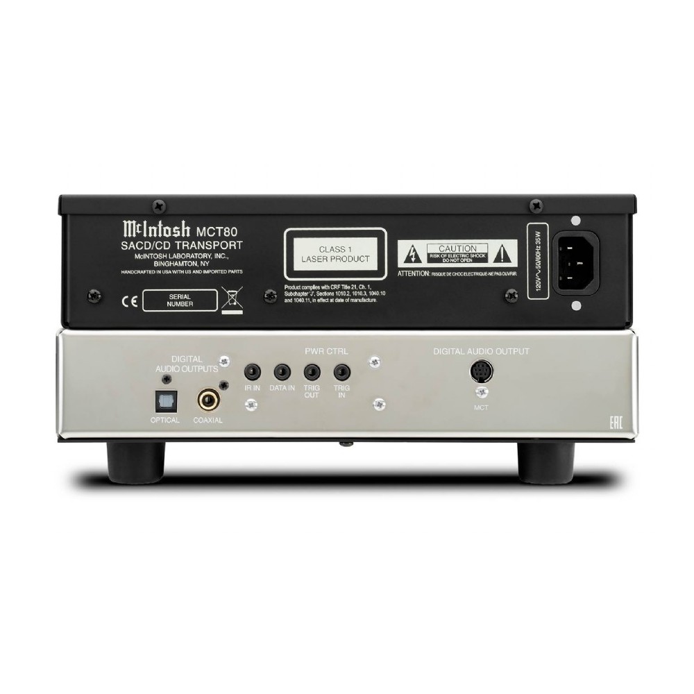 Elegante a la vez que ultracompacta para combinar a la perfección con los modelos más genuinamente “lifestle” de McIntosh, la MCT80 es una mecánica de transporte CD/SACD pensada para quienes ya disponen de un procesador digital de audio (DAC) separado o una electrónica de conversión D/A incluida en otro componente de su sistema de Alta Fidelidad o Cine en Casa. Compatible con CD’s, SACD’s y CD’s de datos, la MCT80 también puede reproducir archivos digitales codificados en formatos tan populares como el AAC, el AIFF, el ALAC, el DSD (hasta DSD128), el FLAC, el MP3, el WAV (hasta 24 bits/192kHz) y el WMA grabados en CD’s de datos. La MCT80 incorpora un total de tres salidas digitales, destacando especialmente la exclusiva MCT de McIntosh, diseñada para preservar la transmisión de datos DSD procedentes de discos SACD. Otro elemento clave de esta exquisita mecánica de transporte es la sofisticación de su bloque de lectura, en el que se utiliza una bandeja de aluminio fundido de alta precisión que en combinación con un avanzado servocontrol digital asegura un funcionamiento extremadamente rápido y silencioso. Además, los datos contenidos en el disco son leídos a una velocidad doble de la normal con el fin de mejorar el seguimiento de aquel y la corrección de errores. La MCT80 se completa con uno de los icónicos paneles frontales de vidrio de McIntosh y, como siempre en la firma estadounidense, una construcción del máximo nivel.